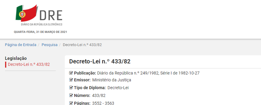 Decreto-Lei n.º 433/82 – Ilícito de mera ordenação social e respectivo processo